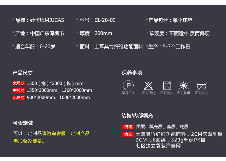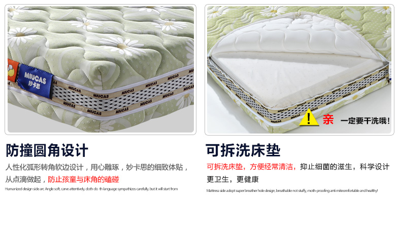 MIUCAS/妙卡思环保无毒儿童床垫 定做天然乳胶席梦思独立弹簧学生 E1-20-09