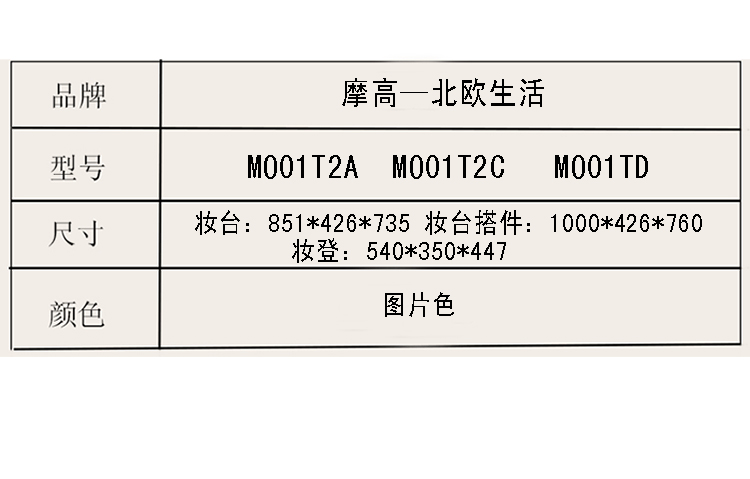摩高北欧生活 卧室妆台妆登北欧风格卧室家具 妆台MP02T2A妆登MO01TD