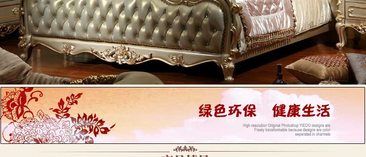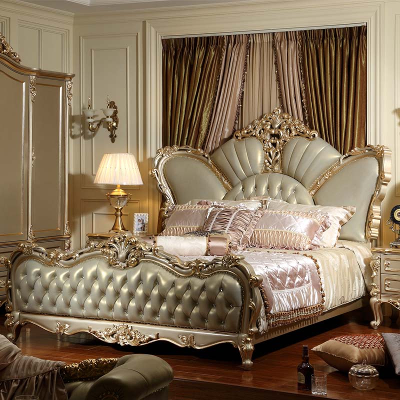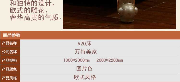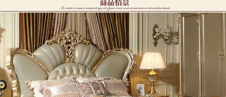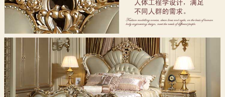 万特美家欧式床双人床奢华宫廷法式公主婚床真皮床新古典实木床A20