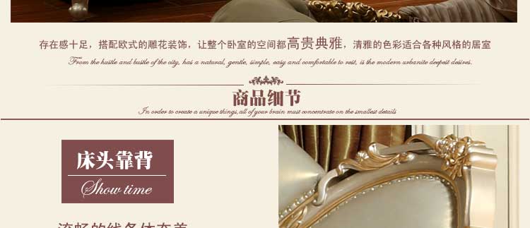 床已收到,款式感觉挺耐看的,欧式的风格和卧室的装修风格也蛮搭的,靠背很舒服。颜色也很显档次的。仔细看了每个部位的材质和做工都还不错