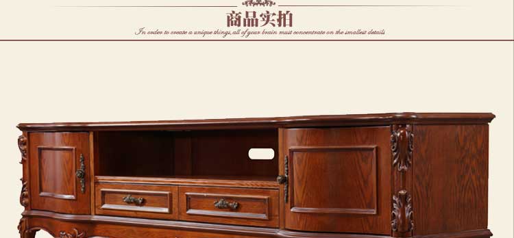 万特美家 电视柜2.2米深色乡村地柜实木电视机柜组合欧式电视柜D69大地柜