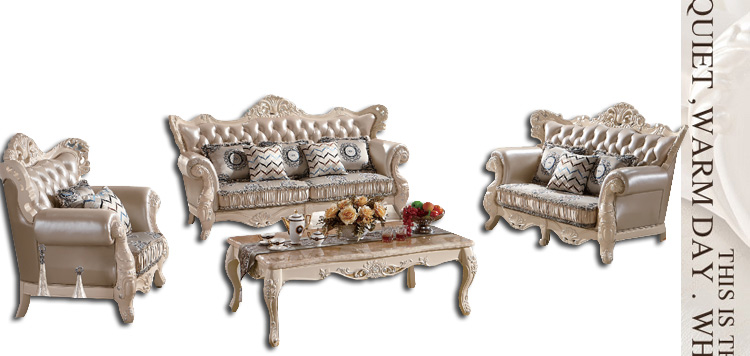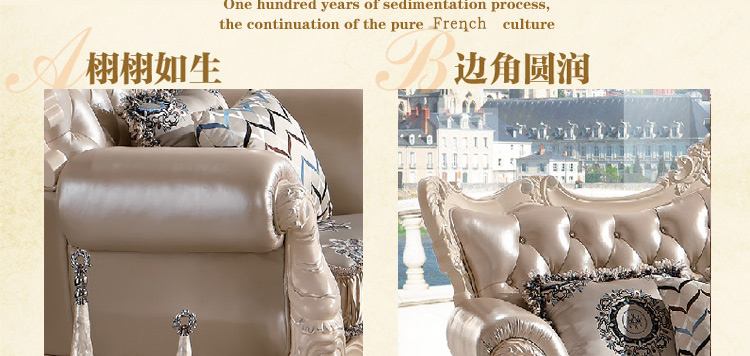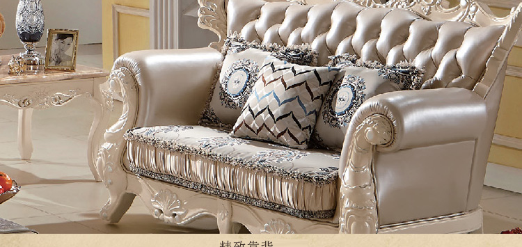 奥迪克欧式沙发欧式皮艺沙发组合高档家具 新古典欧式田园实木客厅沙发KL208A