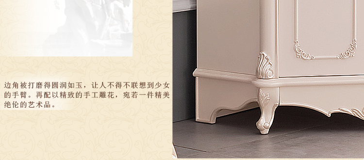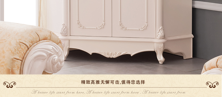 欧式风格家具特点讲究手工精细的裁切雕刻,轮廓和转折部分由对称而富有节奏感的曲线或曲面构成,结构简练,线条流畅,色彩富丽,艺术感强,给人的整体感觉是华贵优雅,十分庄重。