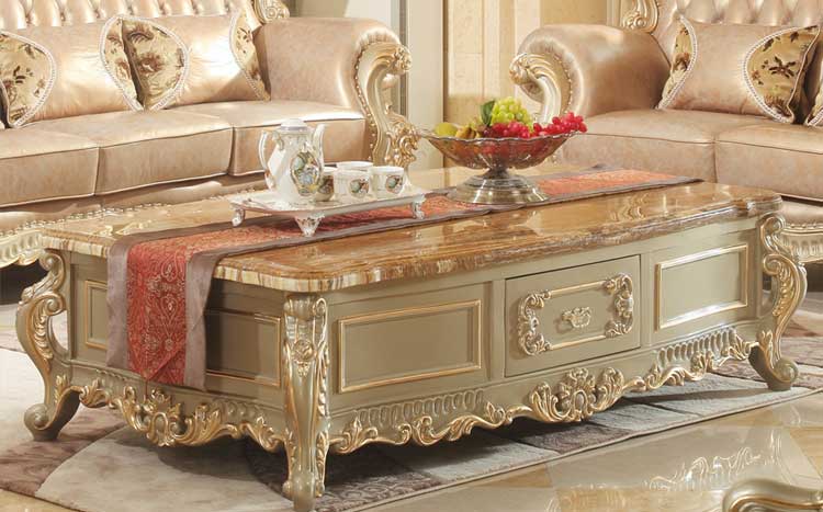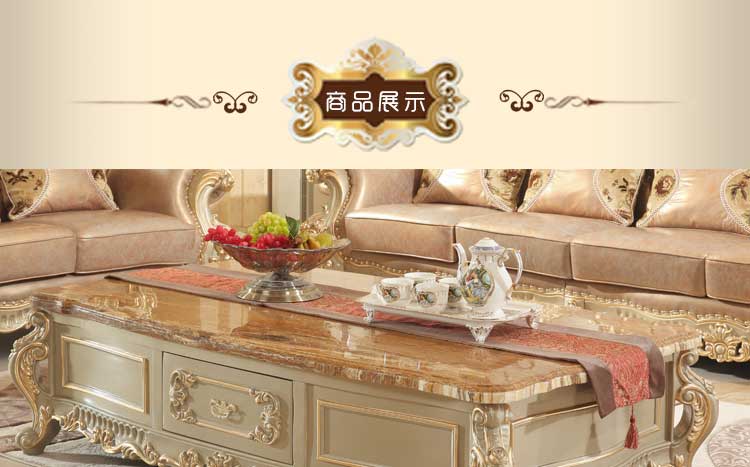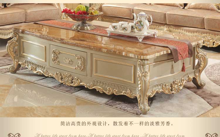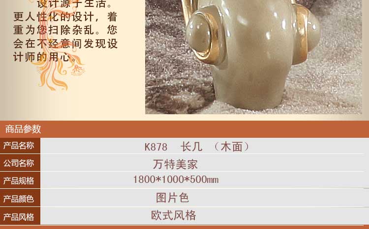 万特美家客厅新款香槟银贴玫瑰金茶几欧式实木雕花长几K878