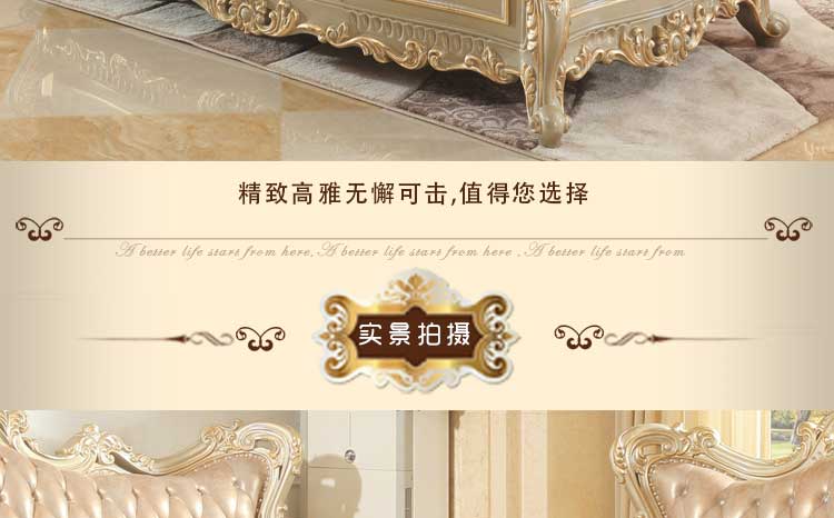 欧式风格家具特点讲究手工精细的裁切雕刻,轮廓和转折部分由对称而富有节奏感的曲线或曲面构成,结构简练,线条流畅,色彩富丽,艺术感强,给人的整体感觉是华贵优雅,十分庄重。