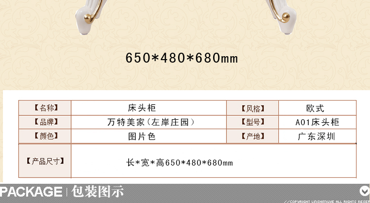 万特美家 欧式家具欧式床头柜实木床头柜储物柜简约床边柜左岸庄园A01床头柜