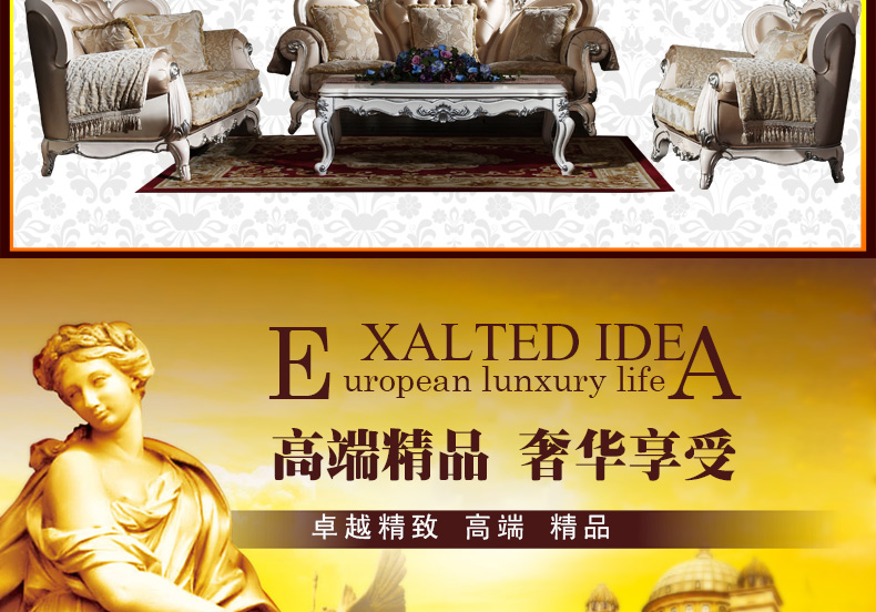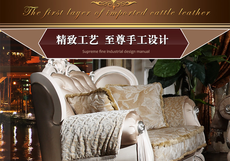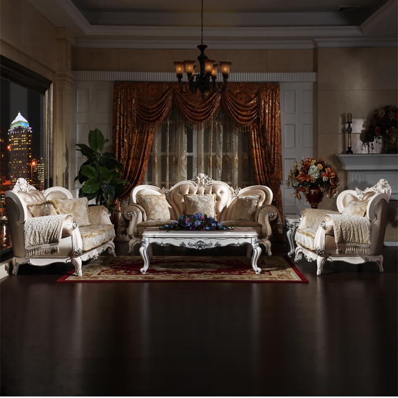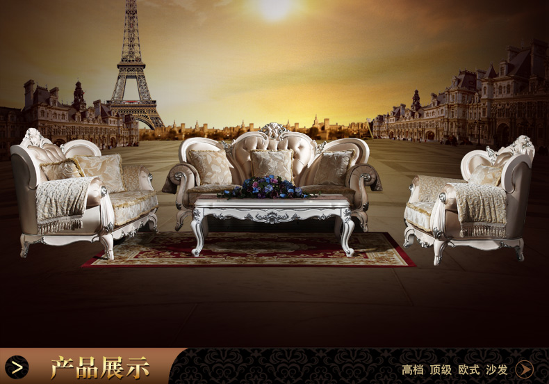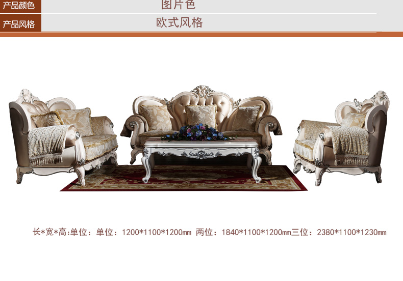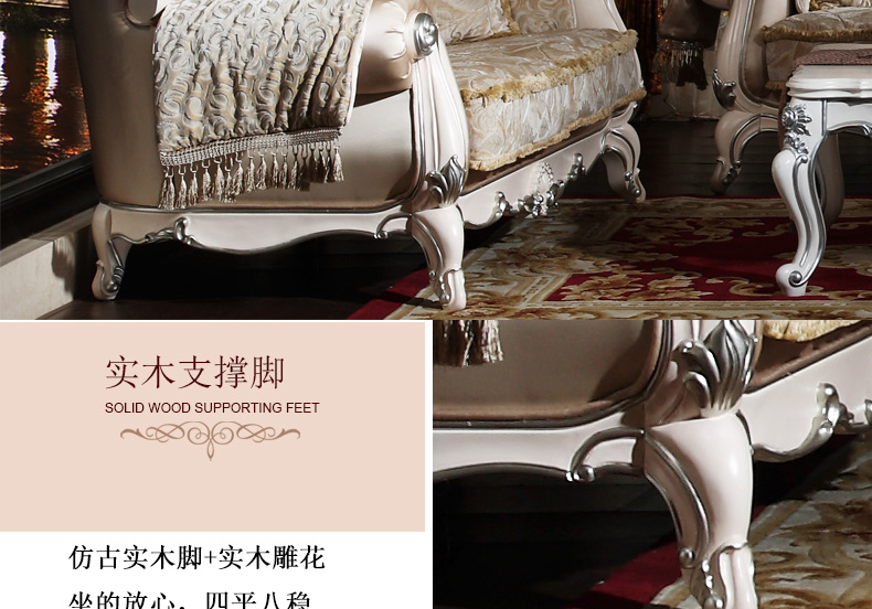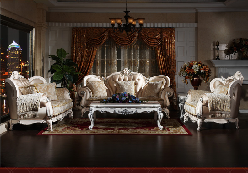 万特美家 欧式家具 欧式沙发组合 皮艺时尚沙发 法式田园组合雕花K861