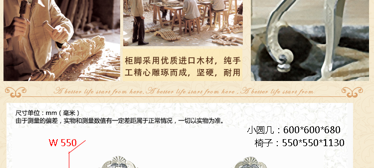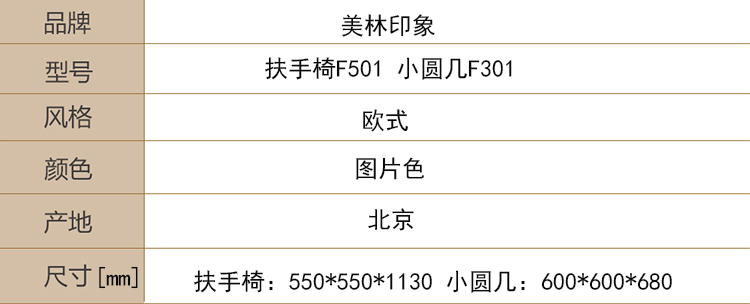 尺寸为(mm) 扶手椅长550*宽550*高1130 小圆几长600*宽600*高680
