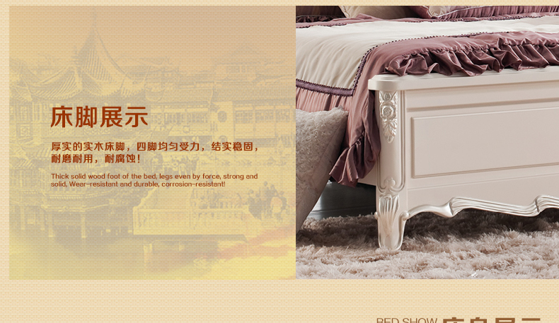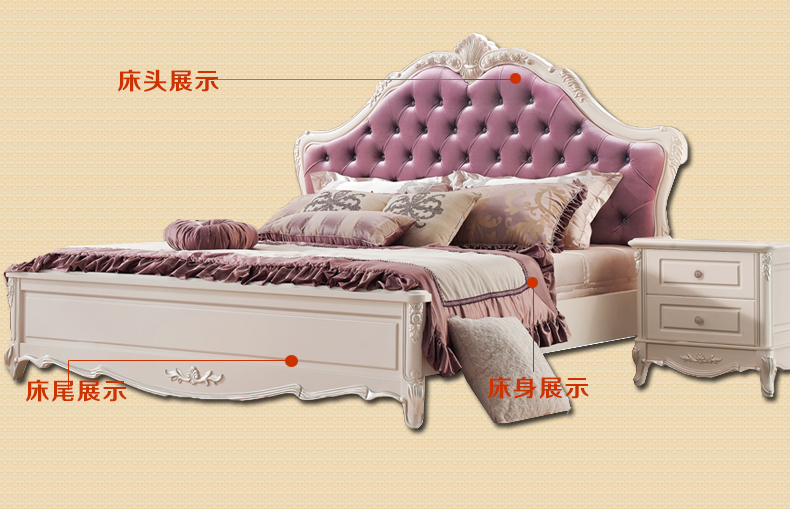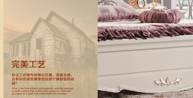 奥迪克成套家具欧式双人床1.8实木床田园公主婚床1.5米M9331A-B