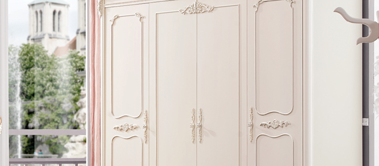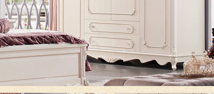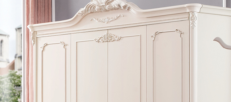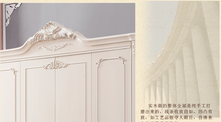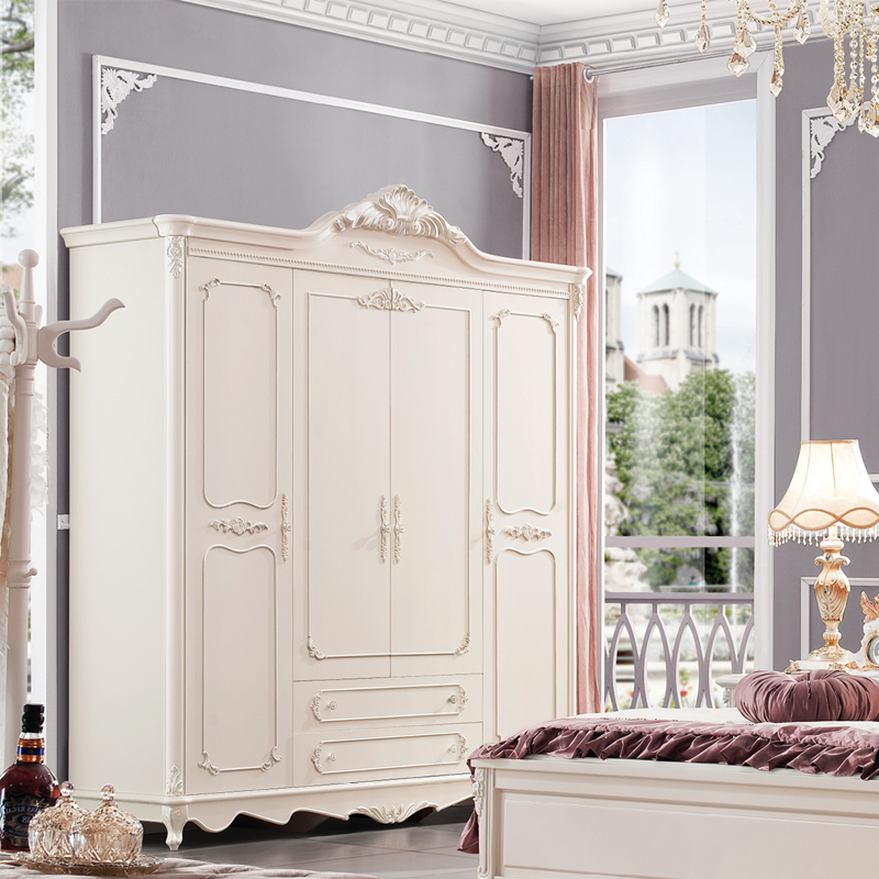奥迪克法式4门大衣柜白色实木奥迪克欧式四开门衣橱雕花特价M9331D