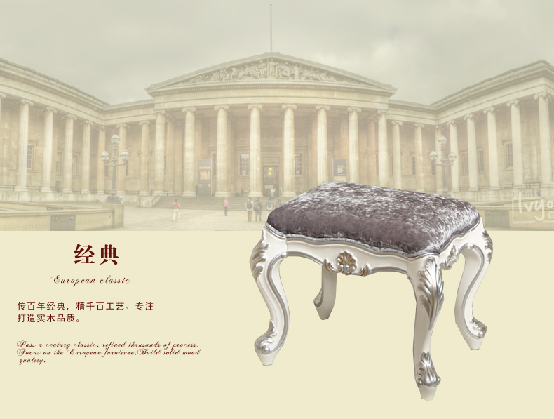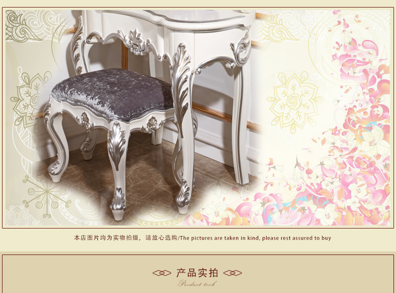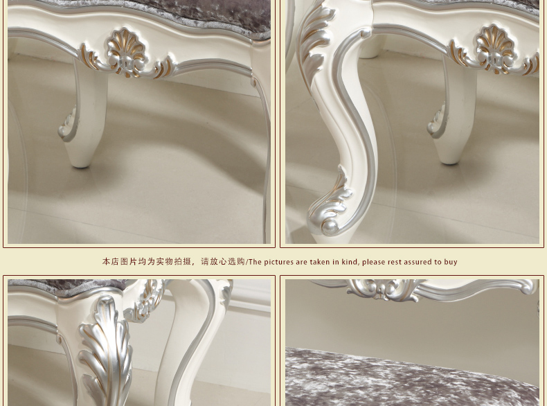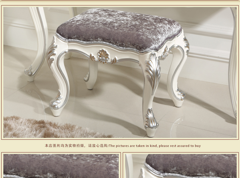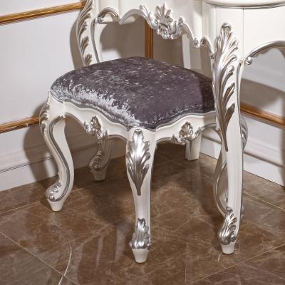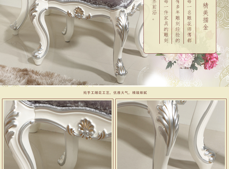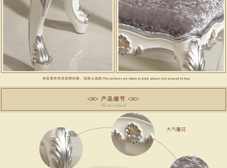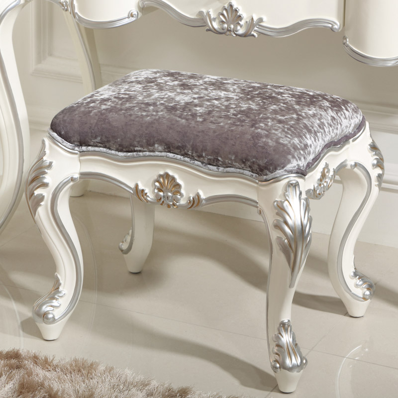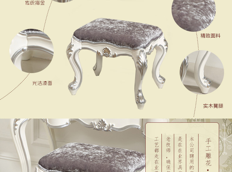 尚多家居 SD801象牙白+银箔做旧法式雕花 坐垫布艺软包梳妆凳坐凳