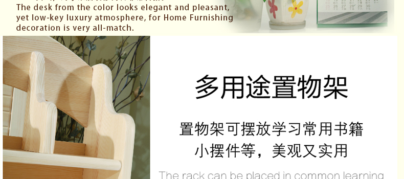 此款书桌,带有两个抽屉,储存东西空间很大,桌子上面还有小小的书架,节省空间