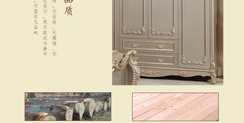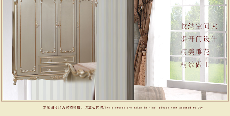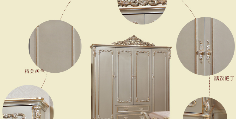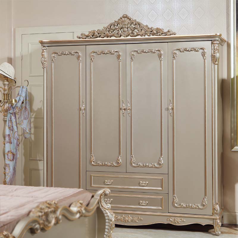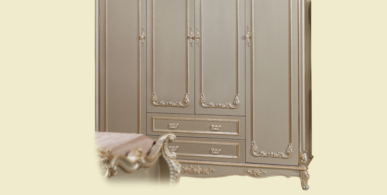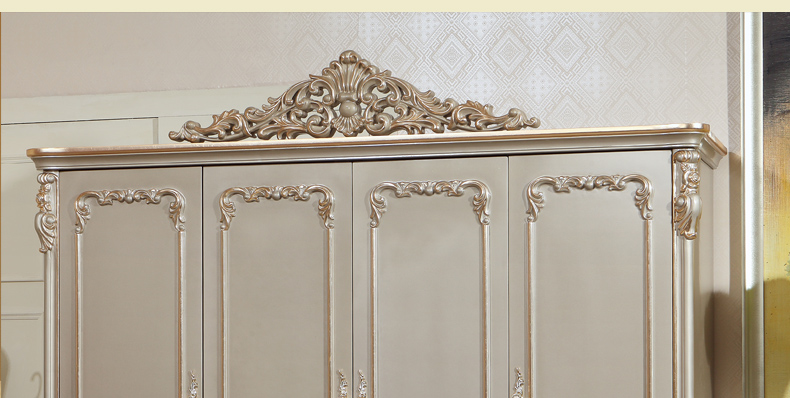 万特美家 卧室衣柜欧式新款四门衣柜厂家直销实木雕花衣柜D76