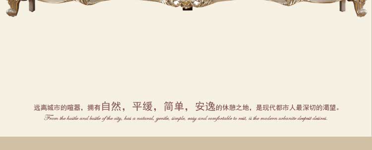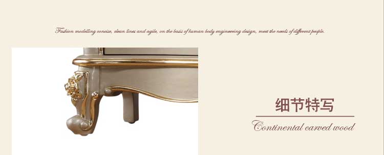 欧式风格家具特点讲究手工精细的裁切雕刻,轮廓和转折部分由对称而富有节奏感的曲线或曲面构成,结构简练,线条流畅,色彩富丽,艺术感强,给人的整体感觉是华贵优雅,十分庄重。