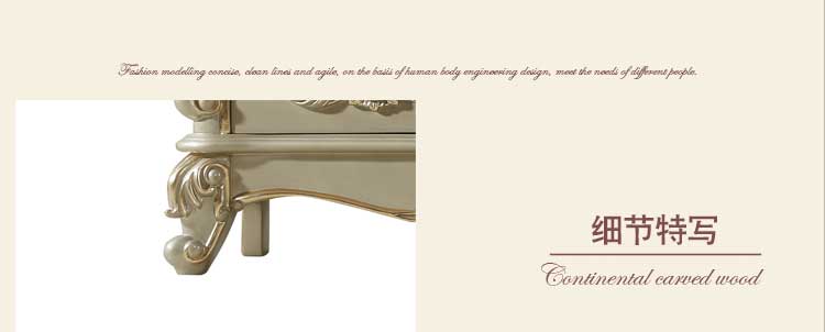 欧式风格家具特点讲究手工精细的裁切雕刻,轮廓和转折部分由对称而富有节奏感的曲线或曲面构成,结构简练,线条流畅,色彩富丽,艺术感强,给人的整体感觉是华贵优雅,十分庄重。