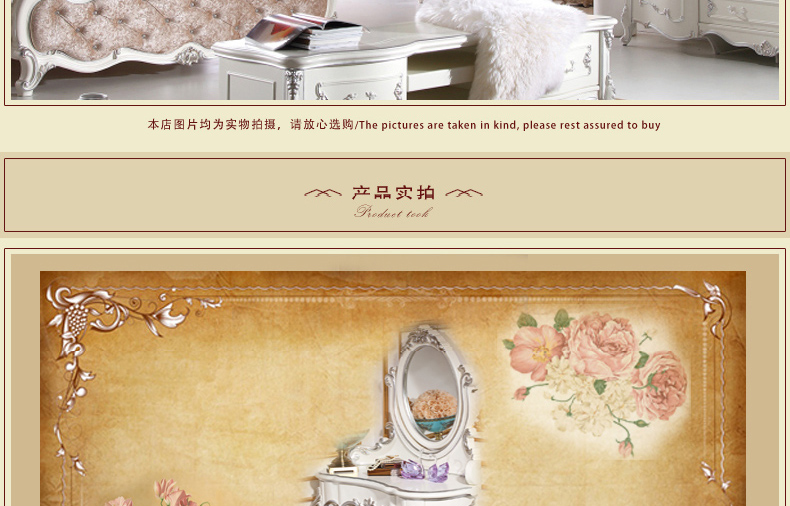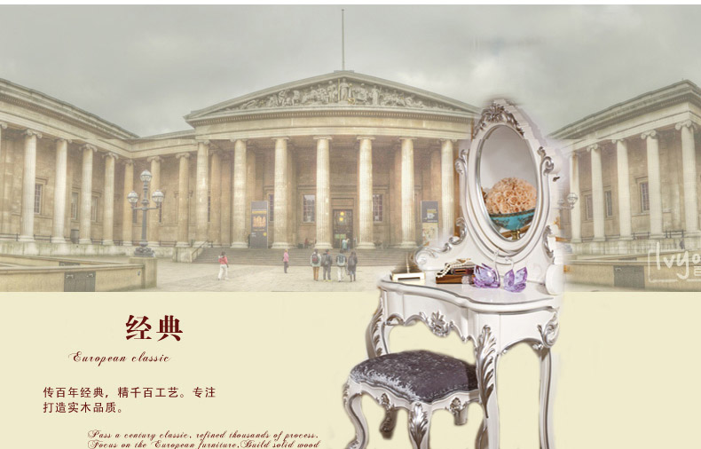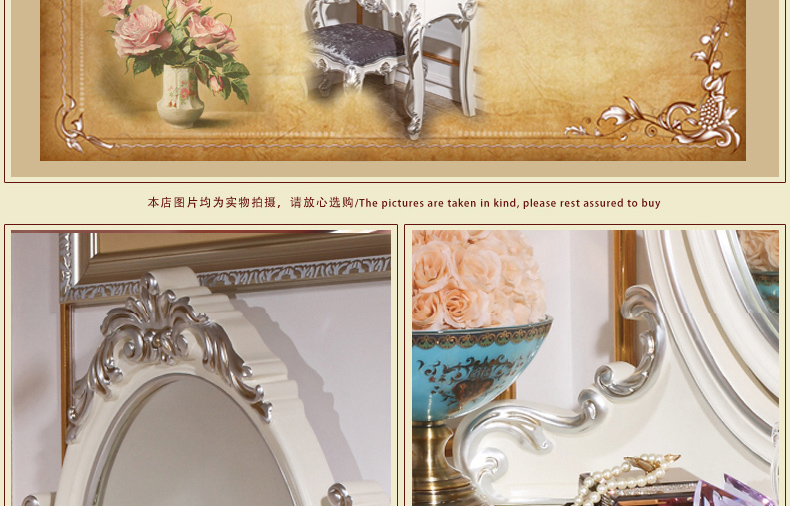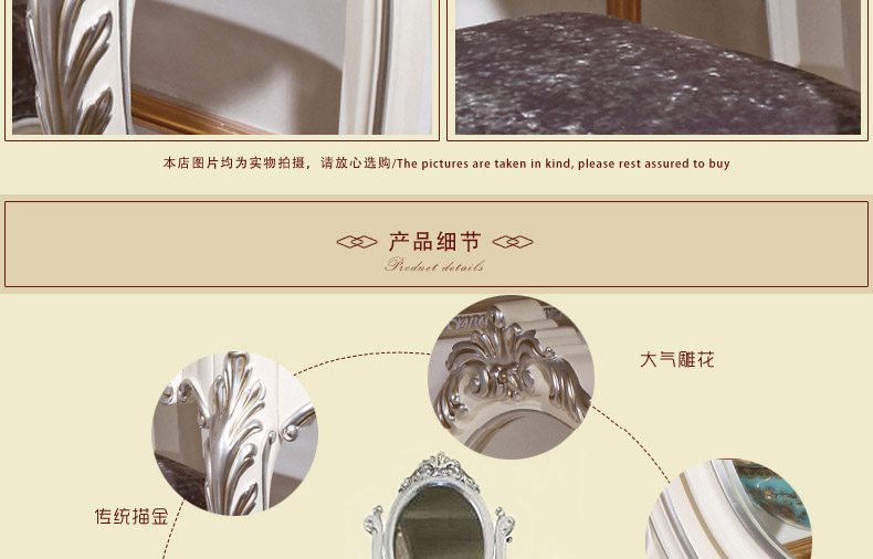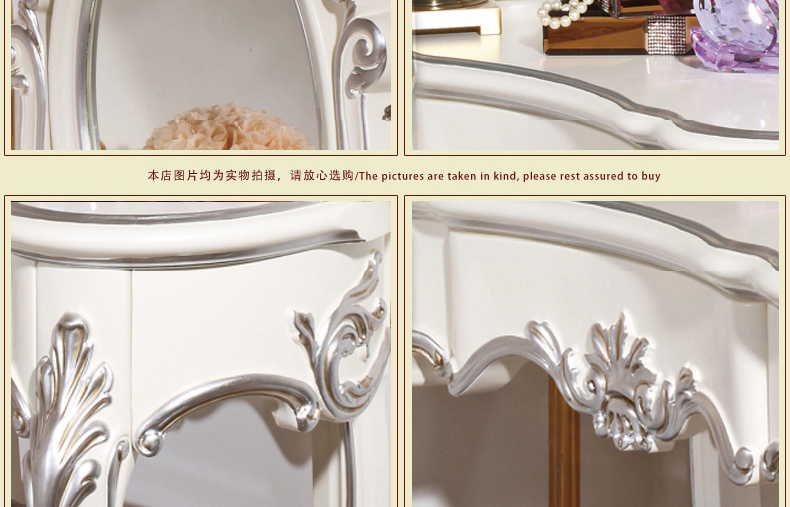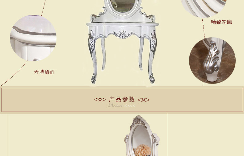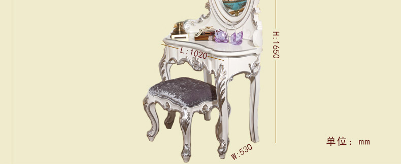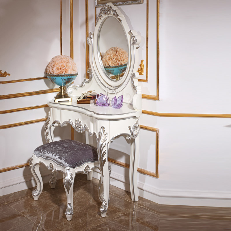 尚多家居 ST801 带镜子梳妆台化妆桌象牙白+银箔做旧法式雕花