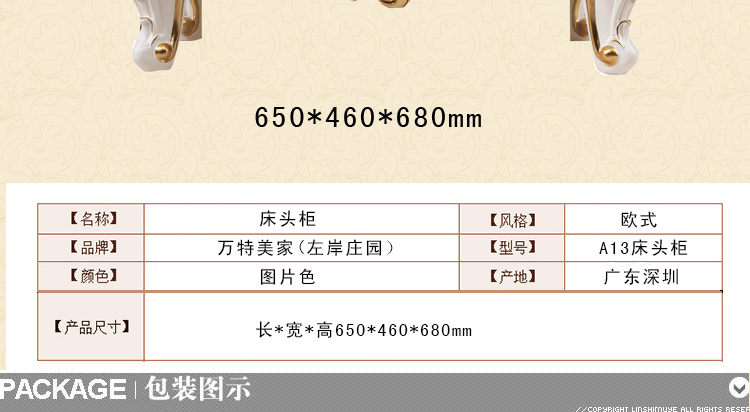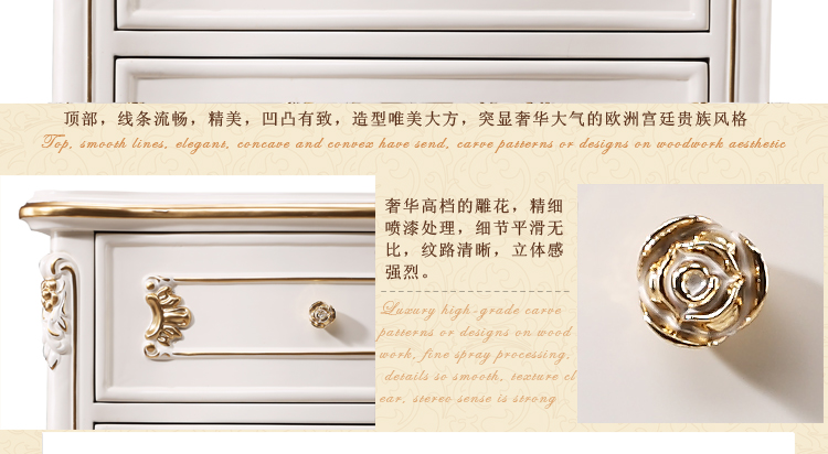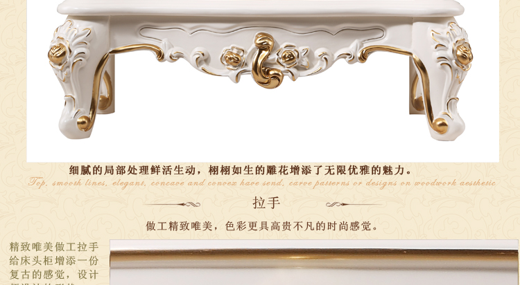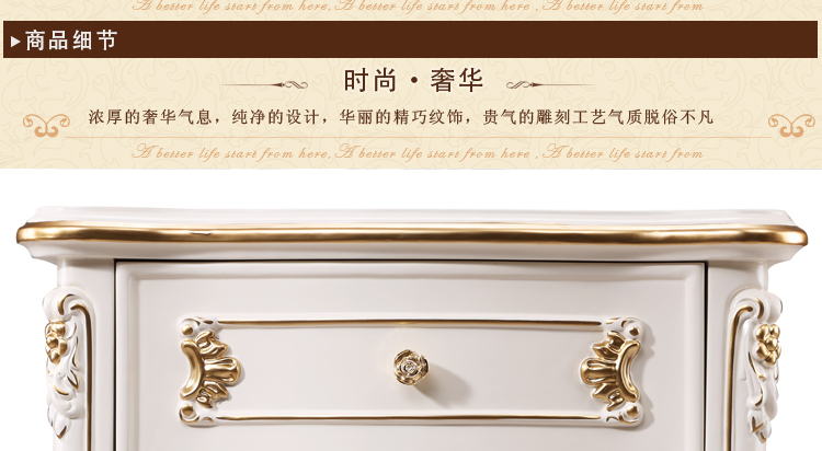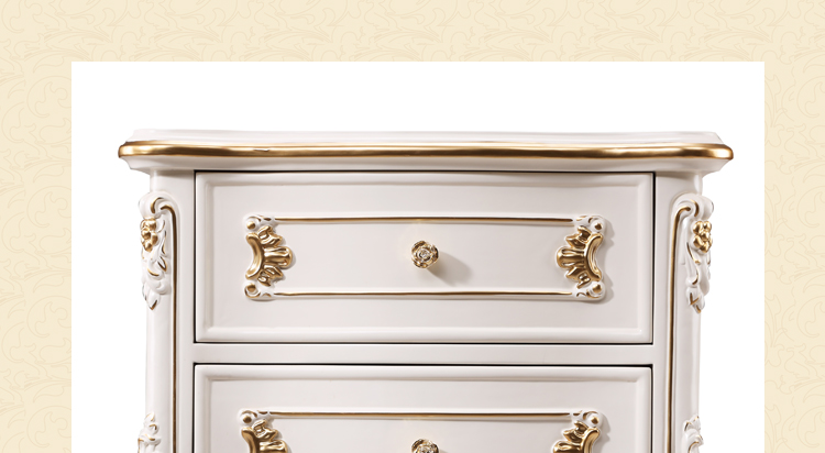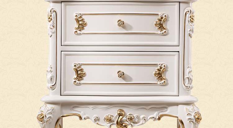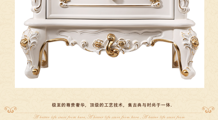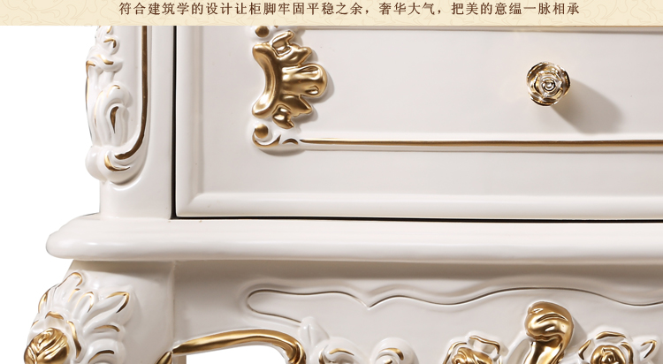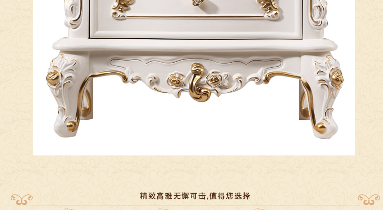 万特美家 床头柜 迷你卧室雕花收纳柜白色实木储物柜左岸庄园A13床头柜