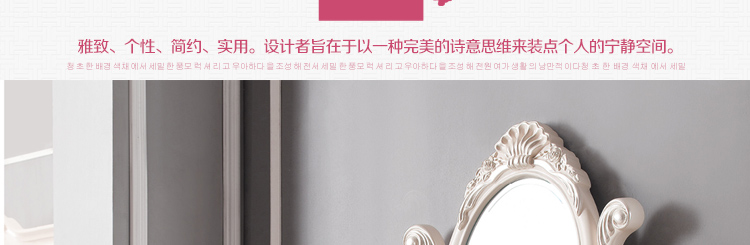 一个完美弧形妆台,它能给您打扮得飘飘亮亮,也能够给您每天带来自信解决日常生活的烦恼。