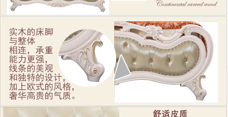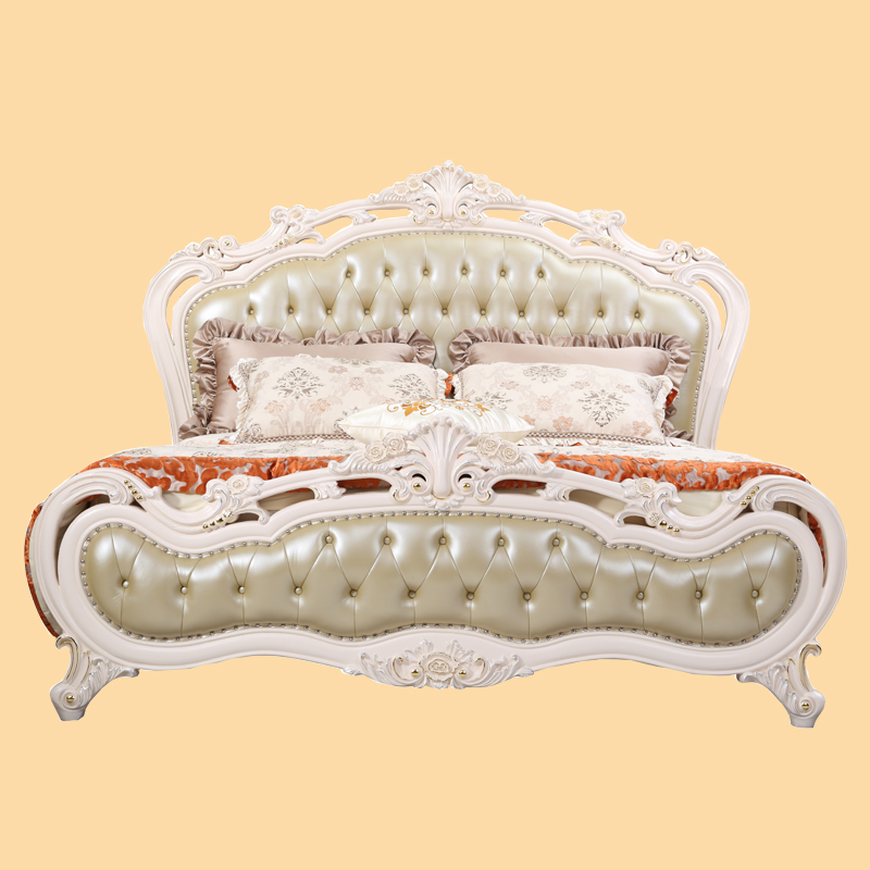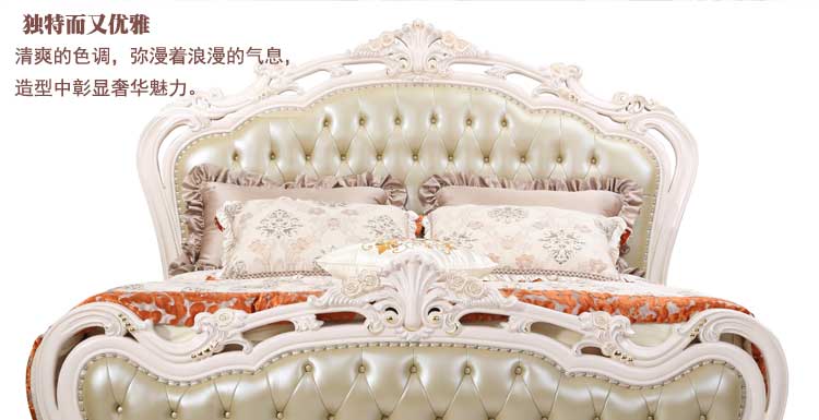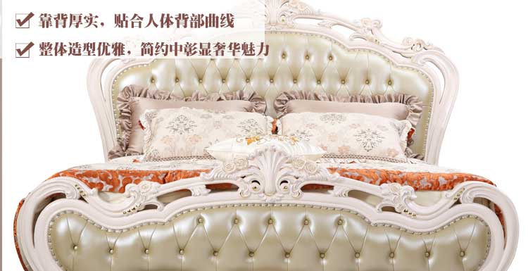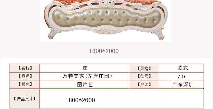 万特美家 双人床白色实木床奢华婚床新古典样板房1.8米公主床左岸庄园A16床