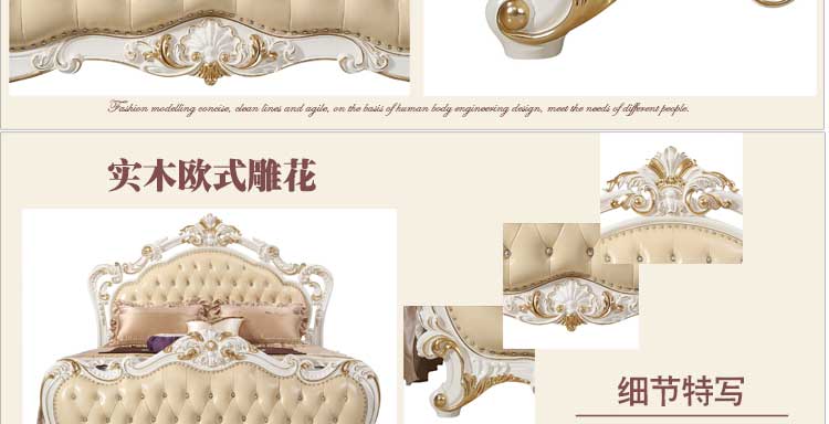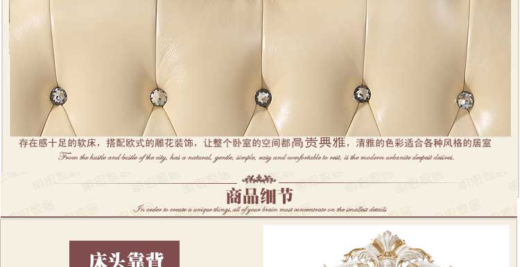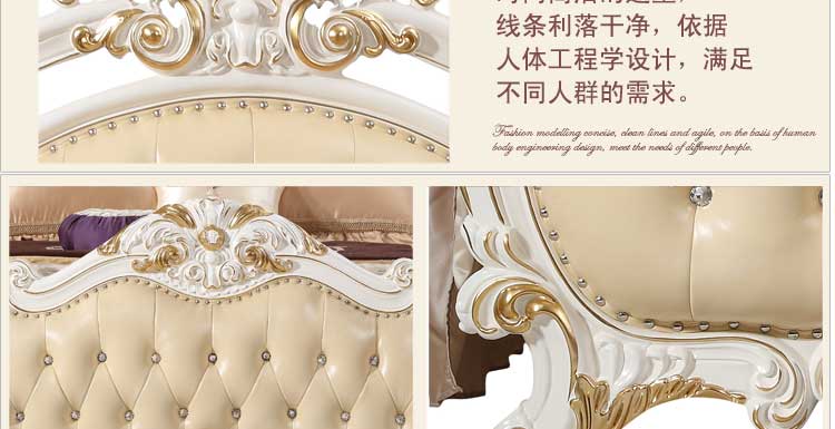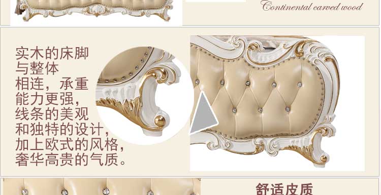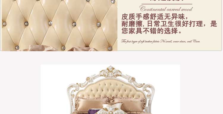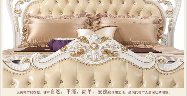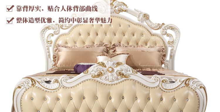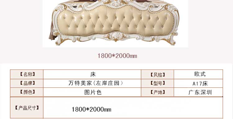万特美家 床双人床 法式真皮床 实木雕花奢华公主床结婚床左岸庄园A17床
