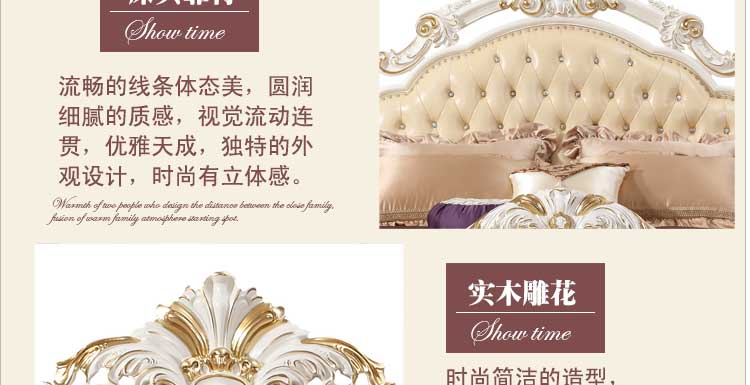床太漂亮了,很喜欢,高大上 ,很霸气。朋友们都说好看,还送货上门安装太值了,关键是卖家服务特别好,有事情都是第一时间处理,售后特别好,装修师傅也特别好。反正这次购物特别满意。等朋友们装修好了,也要过来买。