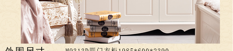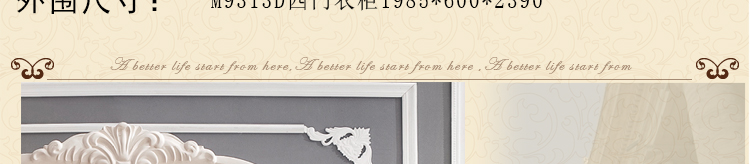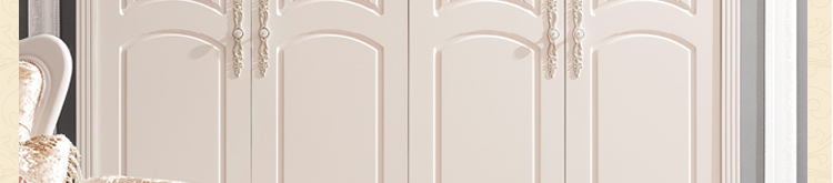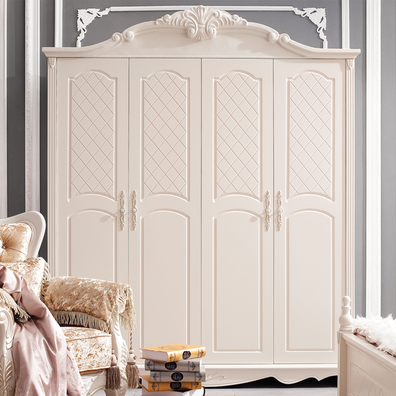 奥迪克白色实木仿古雕花欧式风格大容量收纳储物四门衣柜M9313D