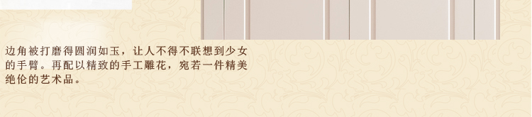 欧式风格家具特点讲究手工精细的裁切雕刻,轮廓和转折部分由对称而富有节奏感的曲线或曲面构成,结构简练,线条流畅,色彩富丽,艺术感强,给人的整体感觉是华贵优雅,十分庄重。