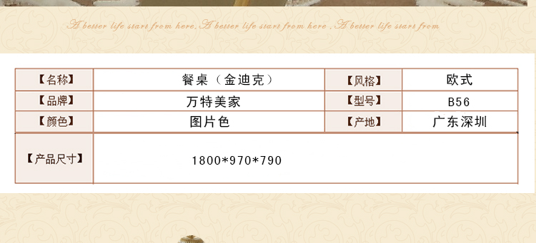 万特美家 厂家直销万特美家新款金迪克系列餐桌欧式奢华雕花餐厅家具B56