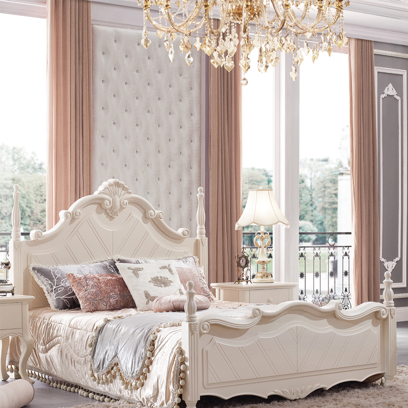 奥迪克欧式简约风格古典实木雕花优雅高贵公主床双人床M9315A