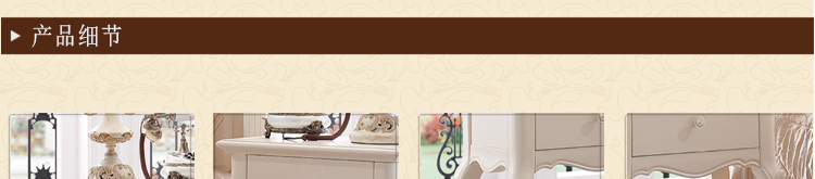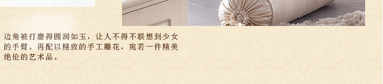 欧式风格家具特点讲究手工精细的裁切雕刻,轮廓和转折部分由对称而富有节奏感的曲线或曲面构成,结构简练,线条流畅,色彩富丽,艺术感强,给人的整体感觉是华贵优雅,十分庄重。