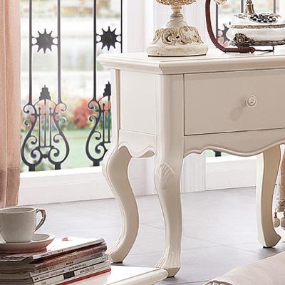 奥迪克白色简约欧式风格实木雕花卧室大小户型储物床头柜M9315B