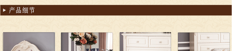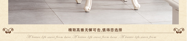 欧式风格家具特点讲究手工精细的裁切雕刻,轮廓和转折部分由对称而富有节奏感的曲线或曲面构成,结构简练,线条流畅,色彩富丽,艺术感强,给人的整体感觉是华贵优雅,十分庄重。