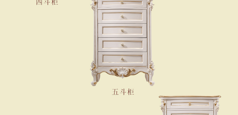 万特美家 欧式斗柜实木储物柜五斗橱复古柜子收纳柜抽屉柜白色简约左岸庄园C-15四斗柜五斗柜六斗柜