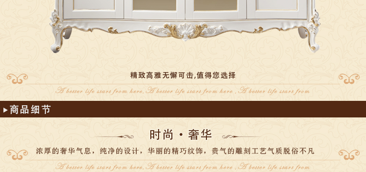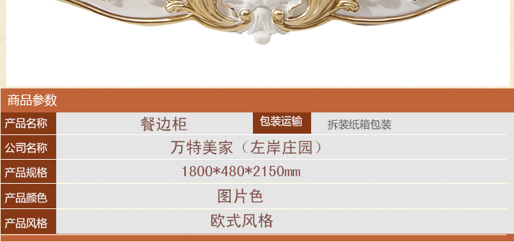 万特美家 欧式餐边柜碗柜法式橱柜茶水柜白色左岸庄园C-18餐边柜