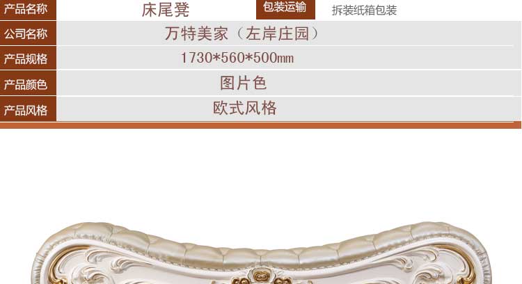 万特美家 欧式床尾凳真皮法式卧室床边换鞋凳左岸庄园A16床尾凳