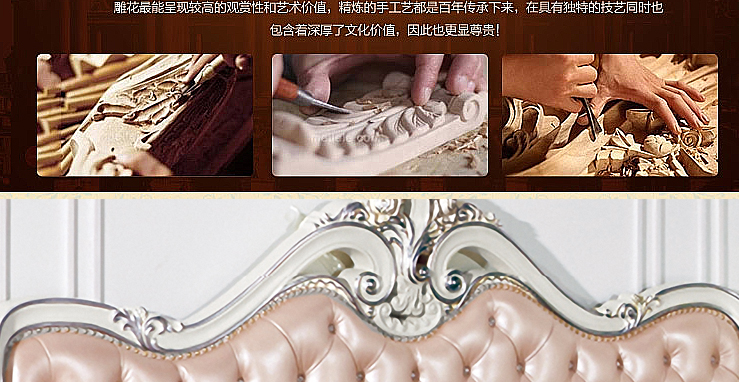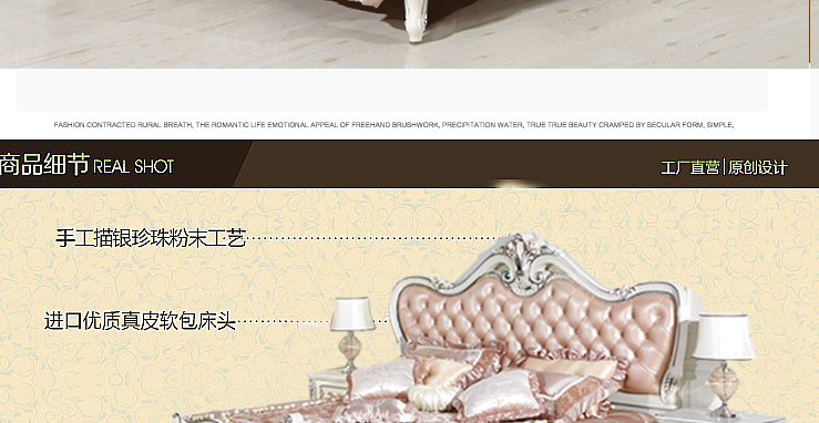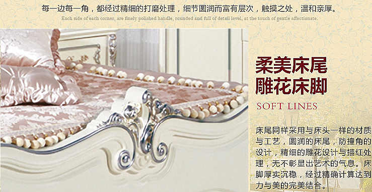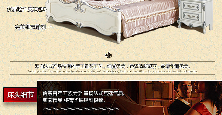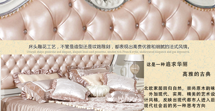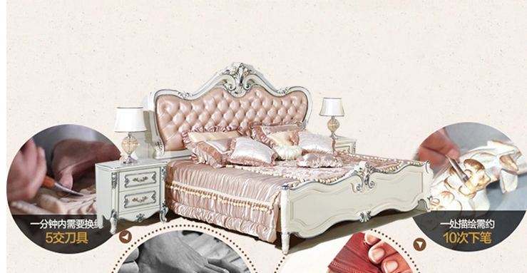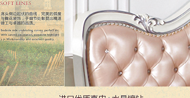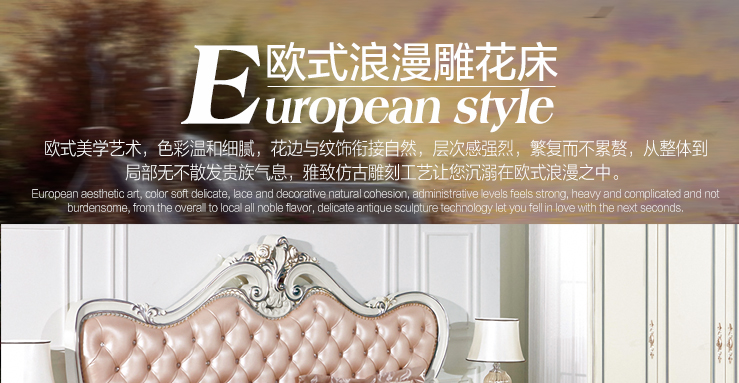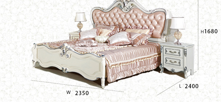 工厂直销,专业客服服务。强大售后服务。浪漫经典欧式风;精美雕花,环保油漆,床头真皮,床尾环保皮,实木床头柱,放心购买。搭配套餐更优惠。