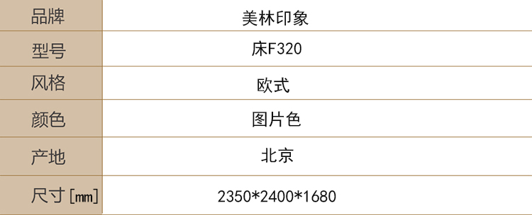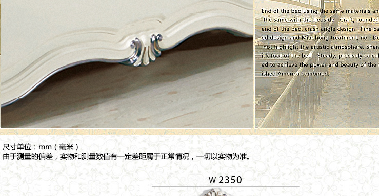 尺寸为(mm)床长2350*2400*高1680 F501床头柜 长580*宽430*高650