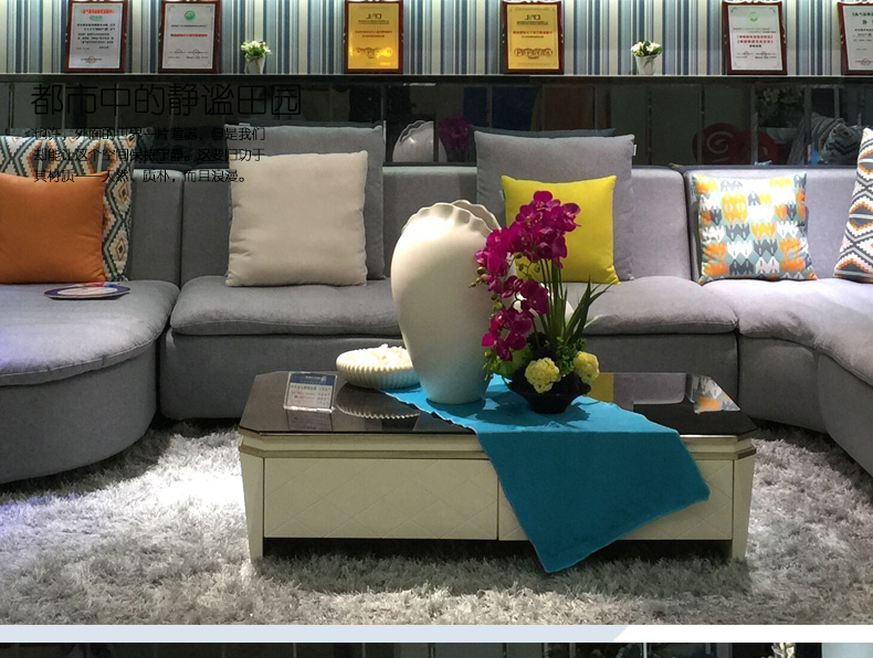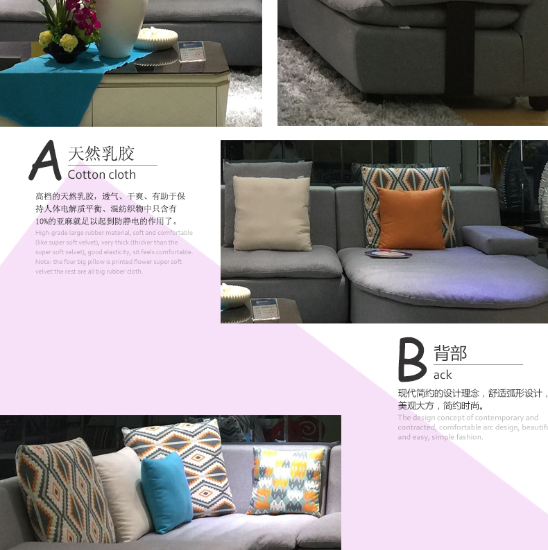 慕驰现代布艺沙发 乳胶沙发 棉麻高靠背布艺沙发 客厅组合沙发S059B