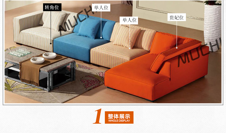 慕驰沙发简约现代布艺乳胶沙发多彩时尚客厅时尚组合沙发家具MC2109-1