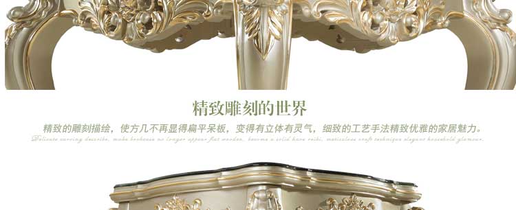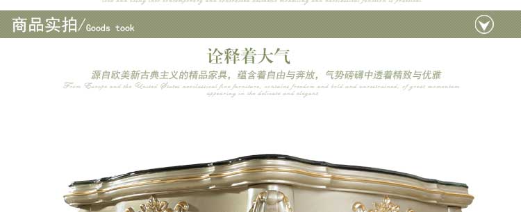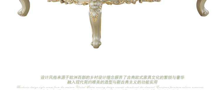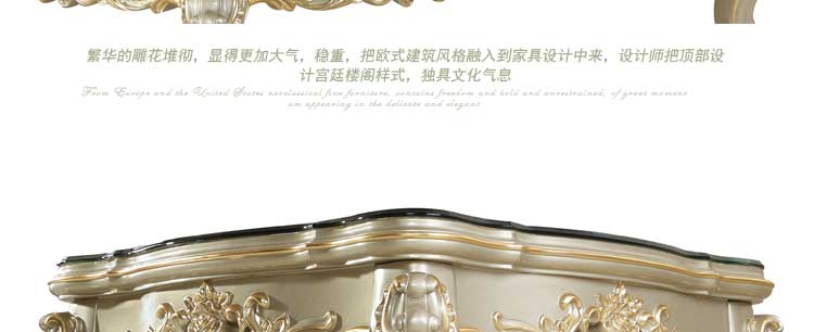 欧式风格家具特点讲究手工精细的裁切雕刻,轮廓和转折部分由对称而富有节奏感的曲线或曲面构成,结构简练,线条流畅,色彩富丽,艺术感强,给人的整体感觉是华贵优雅,十分庄重。