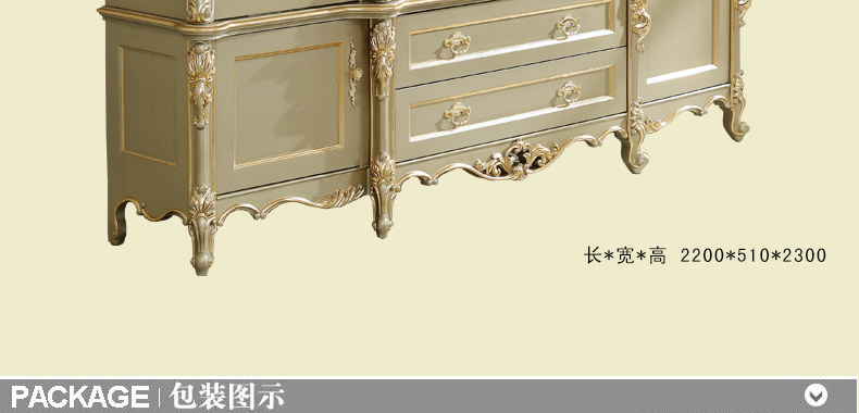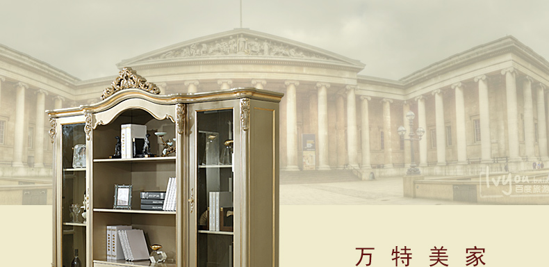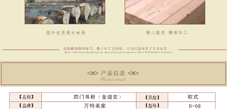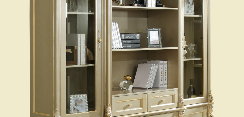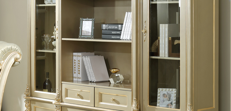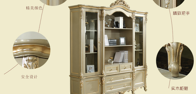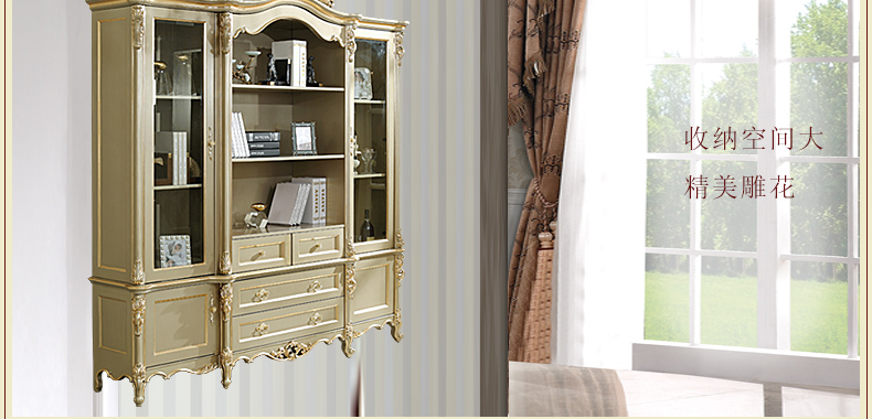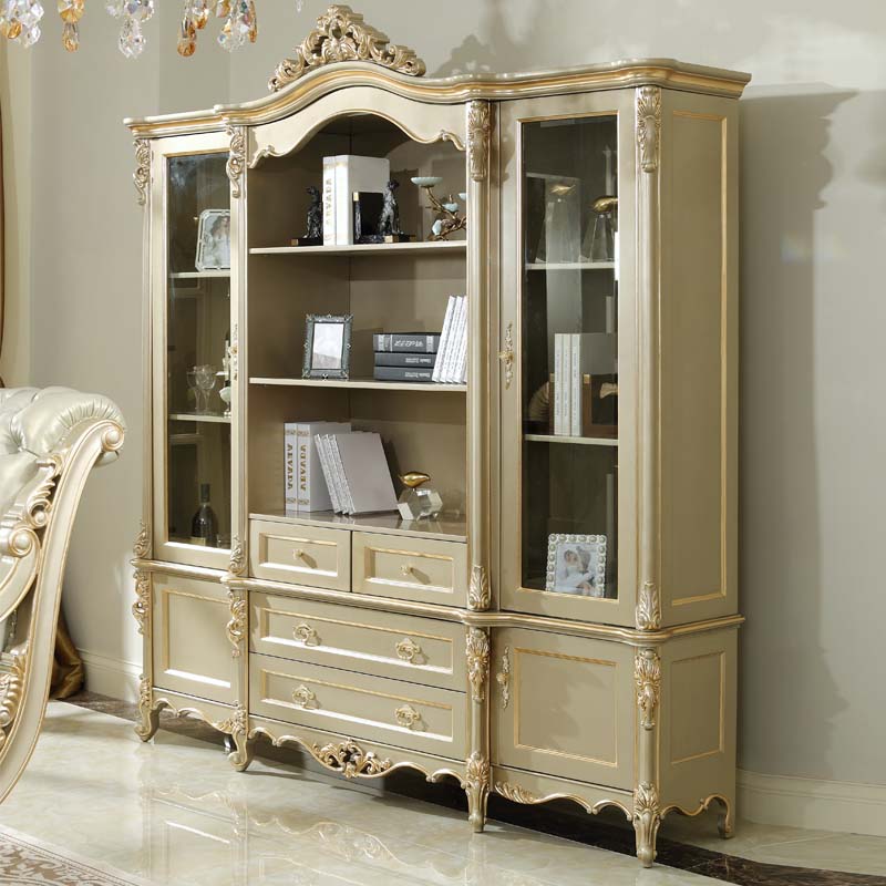 万特美家 万特美家书房欧式实木雕花四门书柜大小户型书房家具D-08