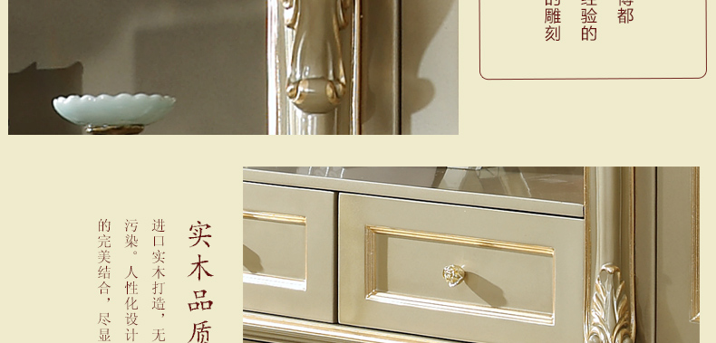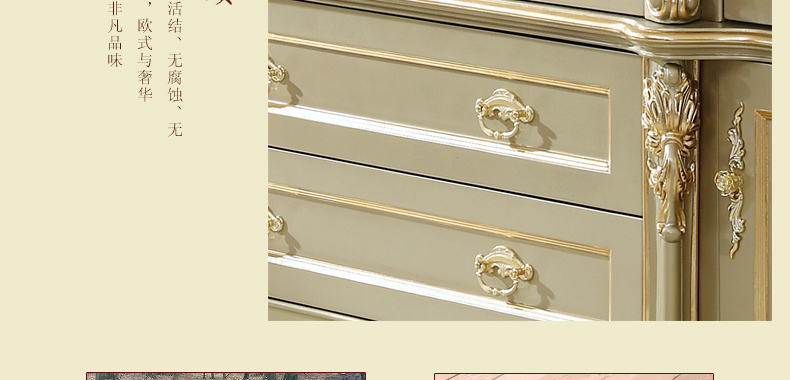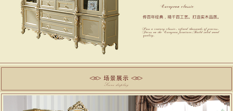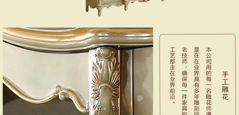 欧式风格家具特点讲究手工精细的裁切雕刻,轮廓和转折部分由对称而富有节奏感的曲线或曲面构成,结构简练,线条流畅,色彩富丽,艺术感强,给人的整体感觉是华贵优雅,十分庄重。
