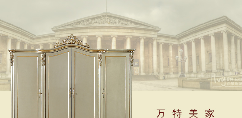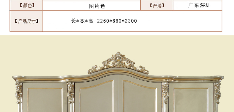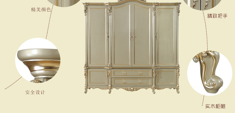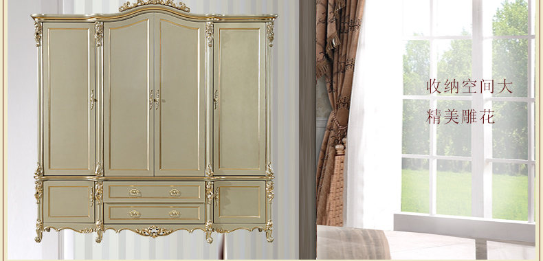 万特美家 欧式新款万特美家金迪克系列实木雕花高档奢华四门衣柜D17