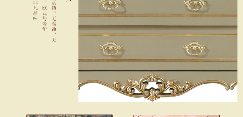 欧式风格家具特点讲究手工精细的裁切雕刻,轮廓和转折部分由对称而富有节奏感的曲线或曲面构成,结构简练,线条流畅,色彩富丽,艺术感强,给人的整体感觉是华贵优雅,十分庄重。