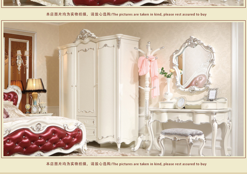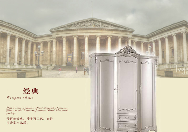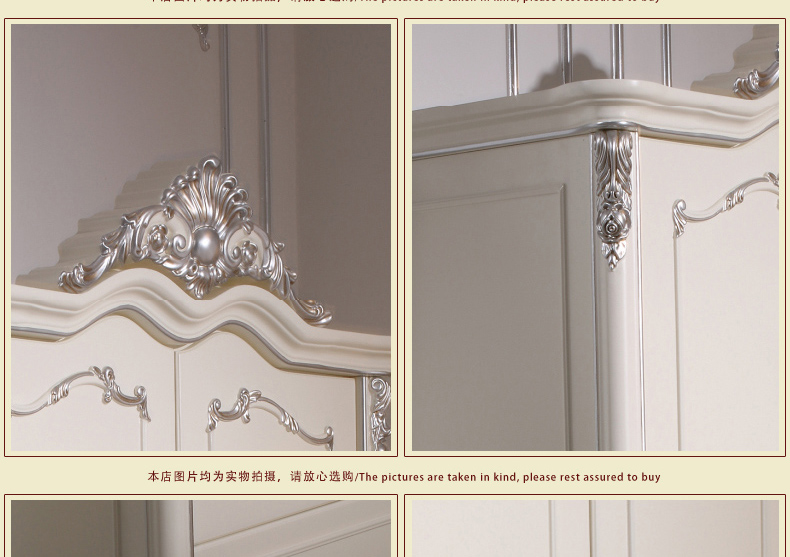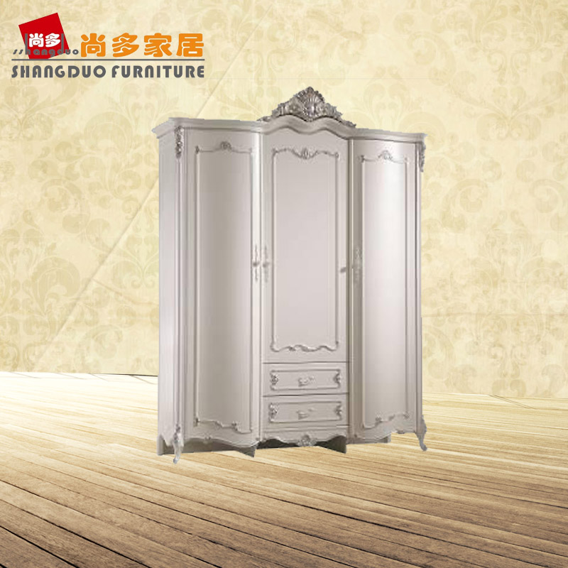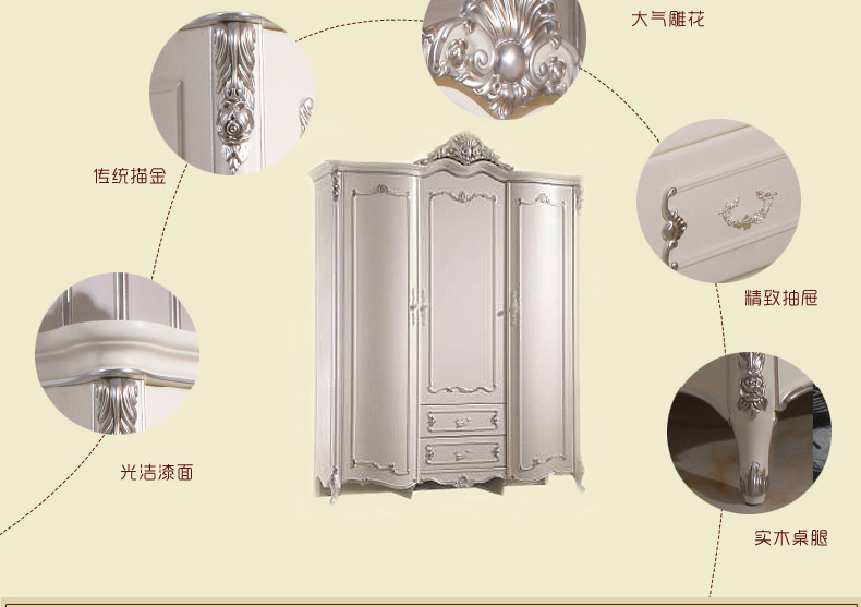 尚多家居 YG801B象牙白+银箔做旧法式雕花 卧室 三门带抽衣柜1.8米大衣橱