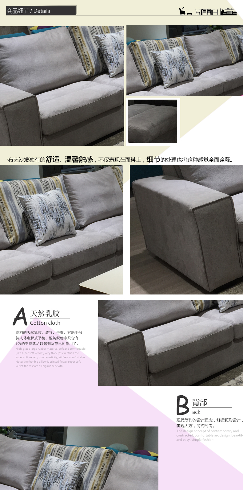 慕驰沙发 乳胶布艺沙发 简约现代可拆洗客厅转角大小户型沙发组合住宅家具S071