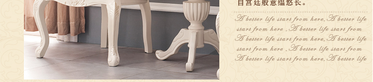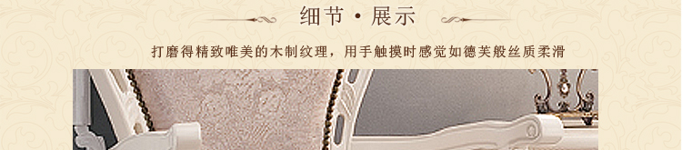 欧式风格家具特点讲究手工精细的裁切雕刻,轮廓和转折部分由对称而富有节奏感的曲线或曲面构成,结构简练,线条流畅,色彩富丽,艺术感强,给人的整体感觉是华贵优雅,十分庄重。