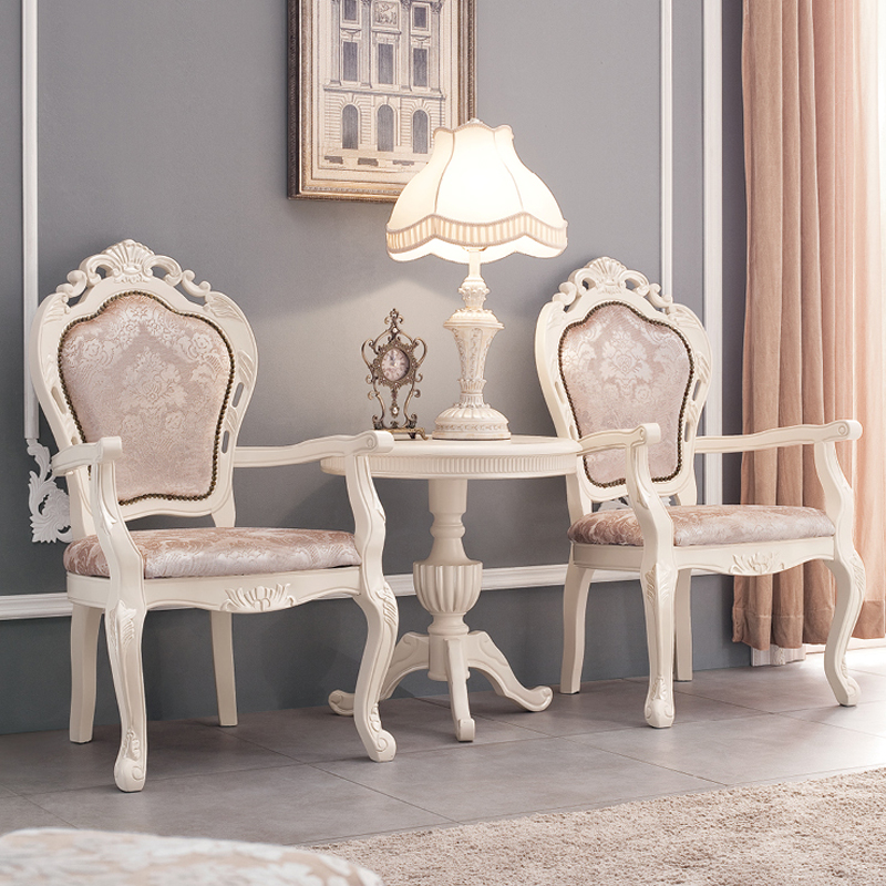 奥迪克欧式简约实木雕花茉莉花白色系列客厅舒适休闲椅MC-573