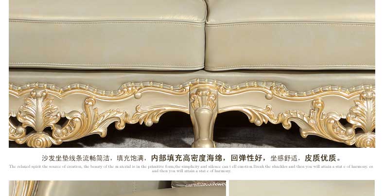 沙发皮质好,手感不错,海绵的回弹性好,雕花精美,高档大气,坐在上面很舒适