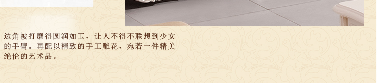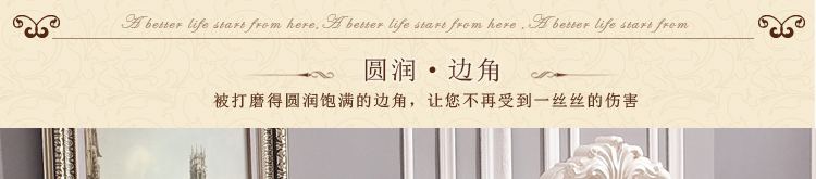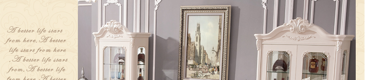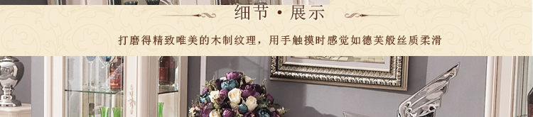 欧式风格家具特点讲究手工精细的裁切雕刻,轮廓和转折部分由对称而富有节奏感的曲线或曲面构成,结构简练,线条流畅,色彩富丽,艺术感强,给人的整体感觉是华贵优雅,十分庄重。